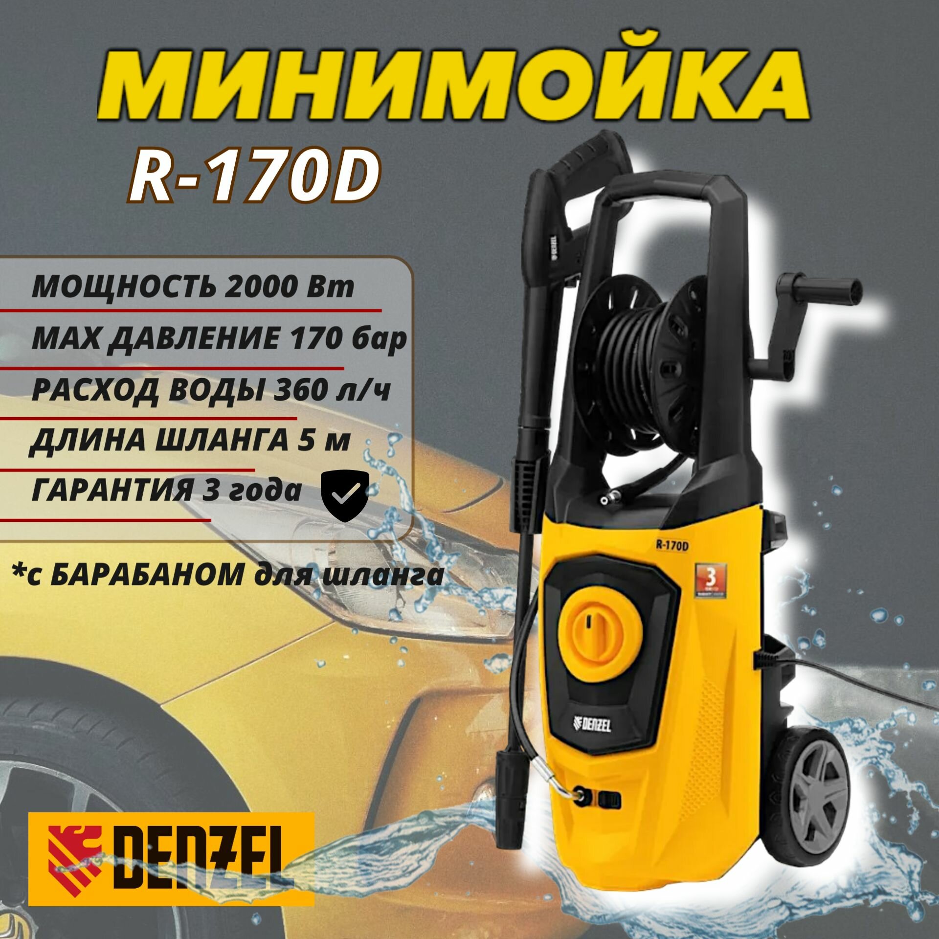Мойка высокого давления Denzel R.170. D PRO (2000 Вт, 360 л/ч, 110-170 бар), минимойка с забором воды