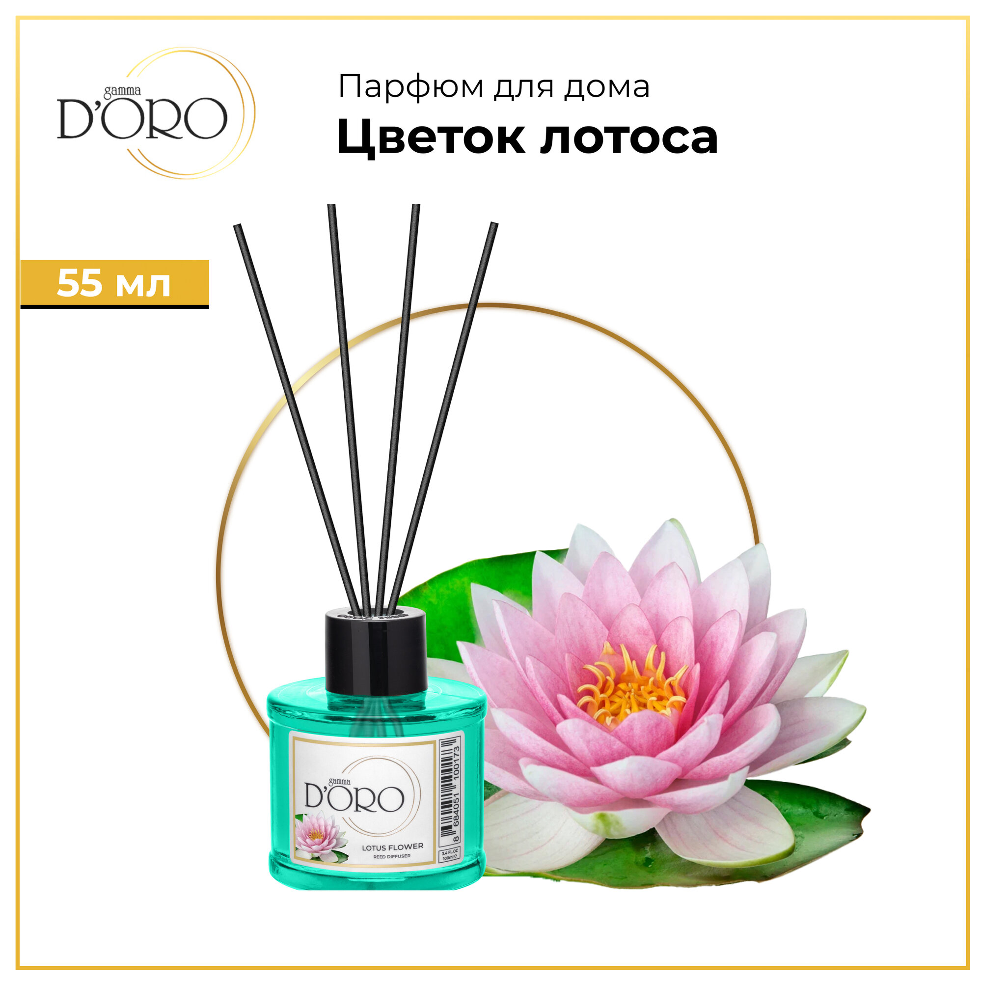 Диффузор для дома Gamma D'Oro Цветок лотоса 55 мл, аромадиффузор с палочками, ароматизатор освежитель воздуха информация:
