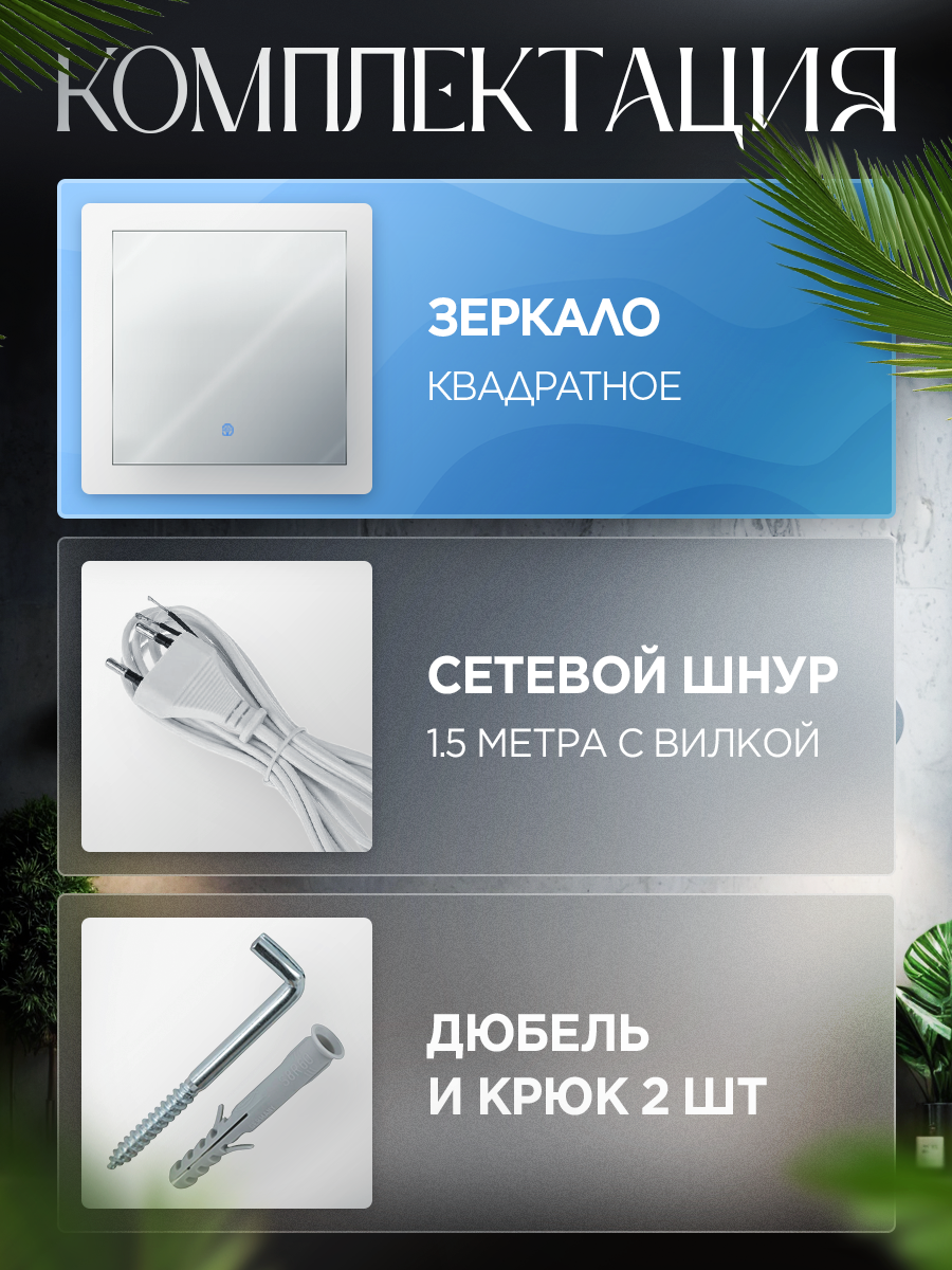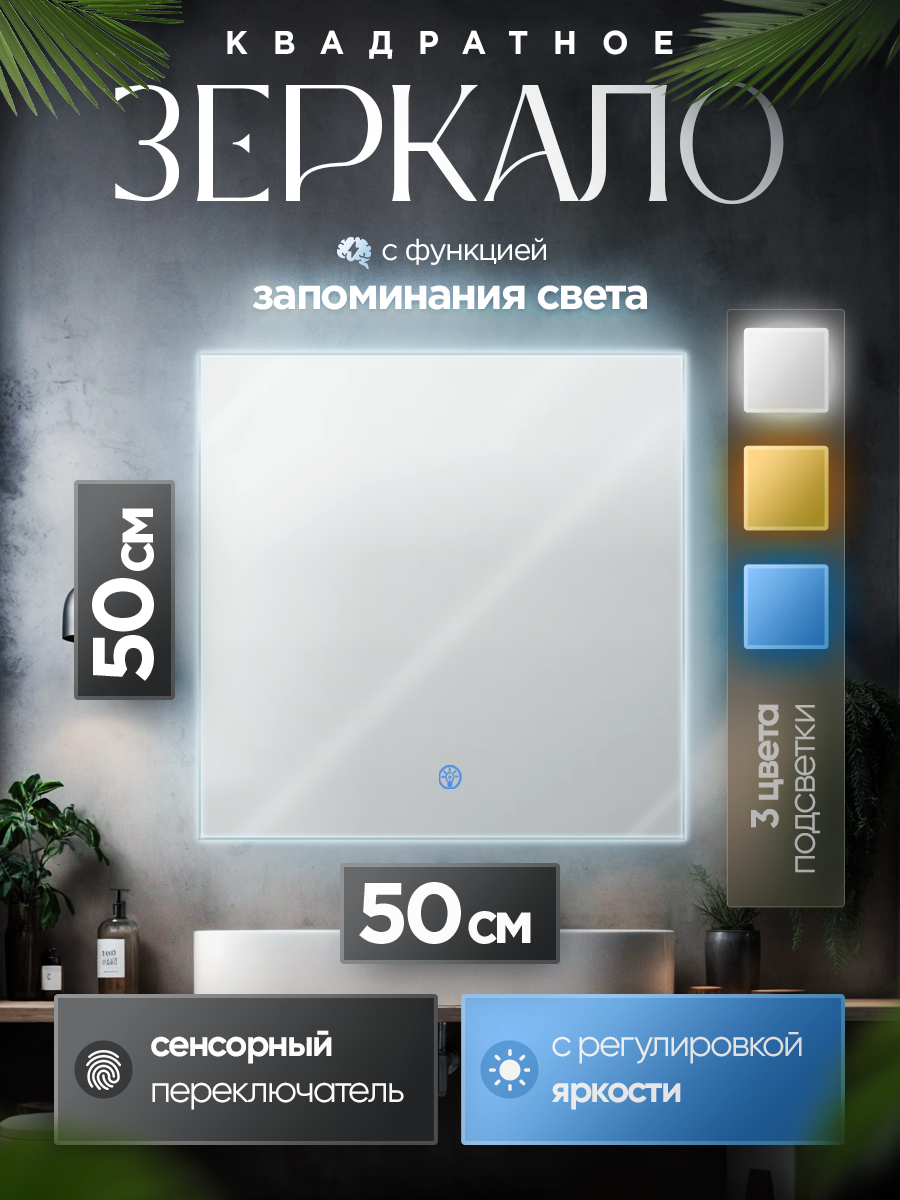 Зеркало для ванной 50х50см с подсветкой 3в1 информация: