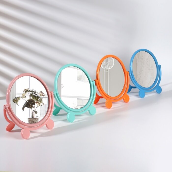 Зеркало настольное, зеркальная поверхность 5 × 15/11 × 15 см, цвет (микс цветов, 1шт)