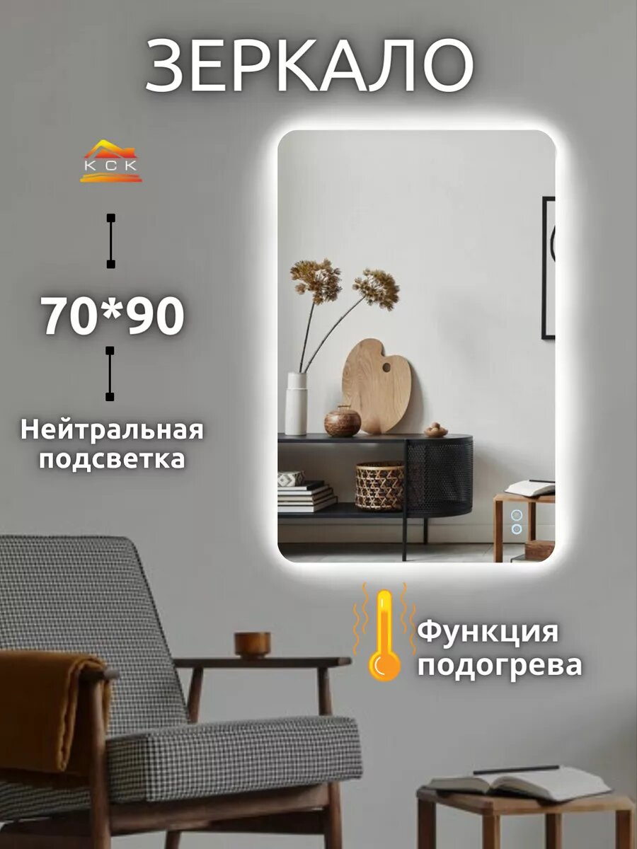 Зеркало с подогревом прямоугольное 70 на 90 см. информация: