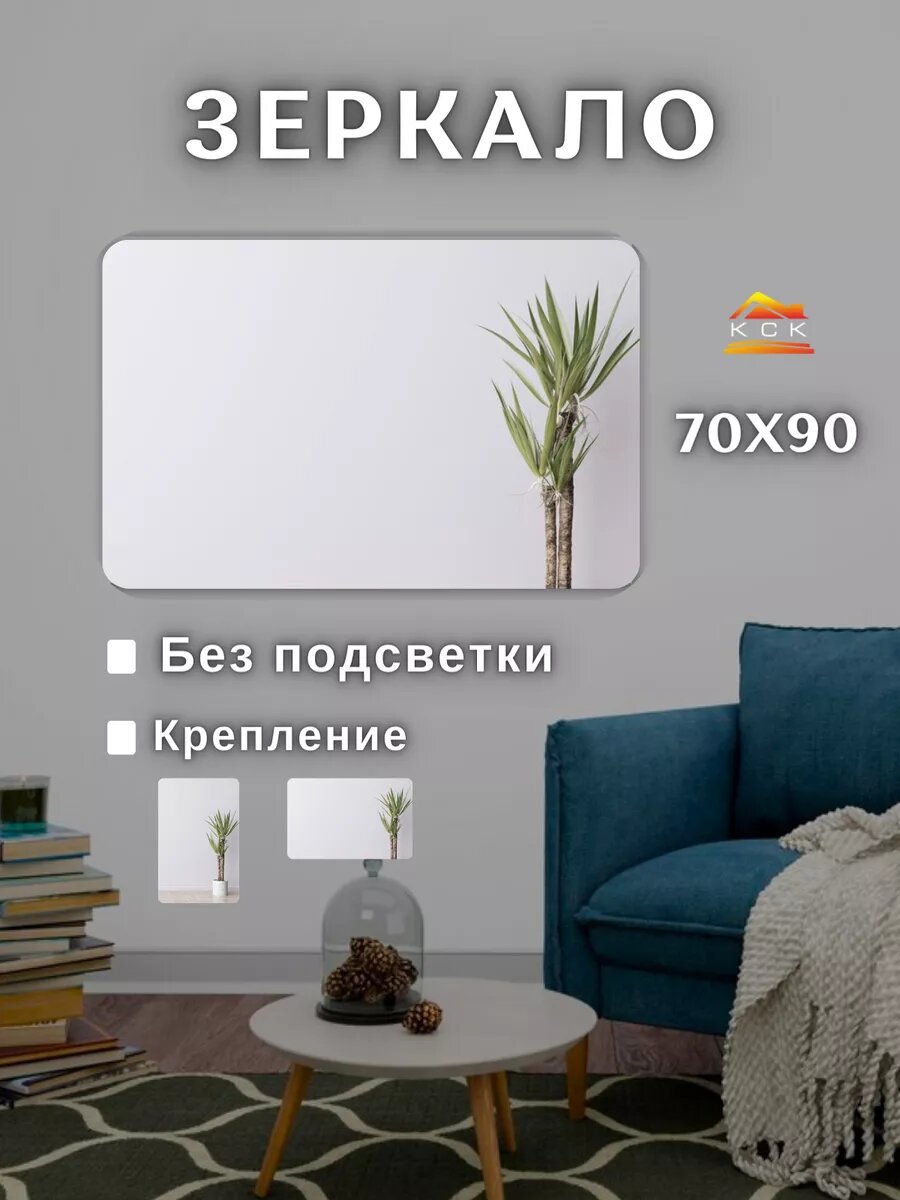 Настенное зеркало для ванной без подсветки70 на 90 см.(закругленные углы) информация: