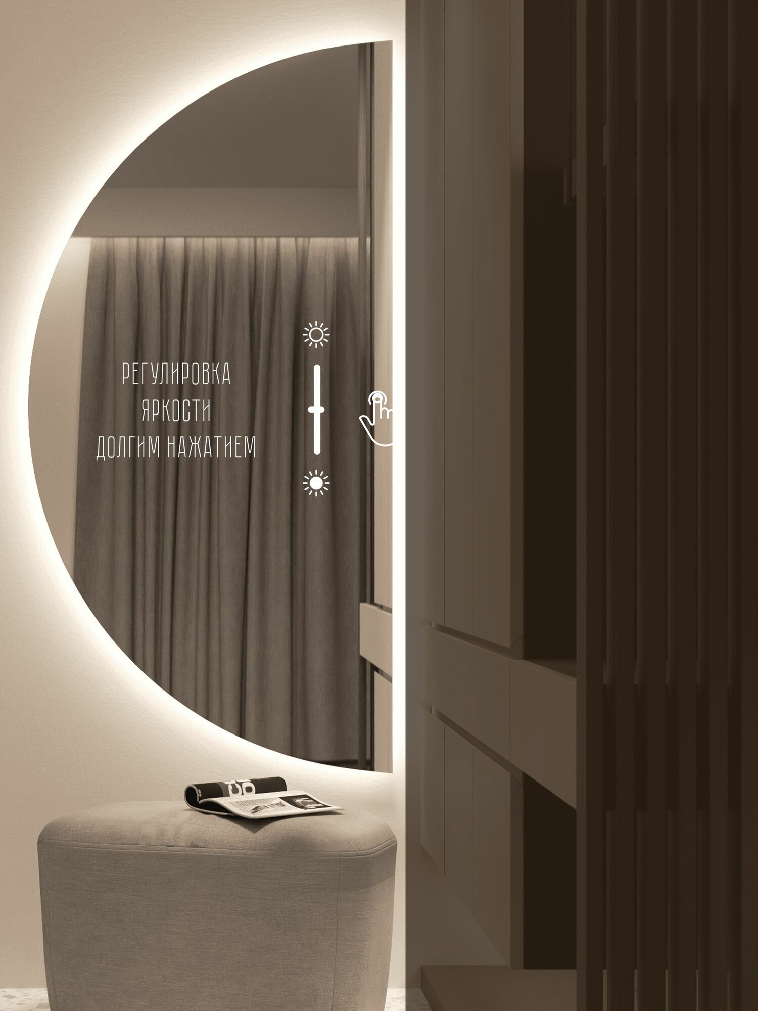 Зеркало настенное полукруглое с подсветкой 90х45см холодный свет информация: