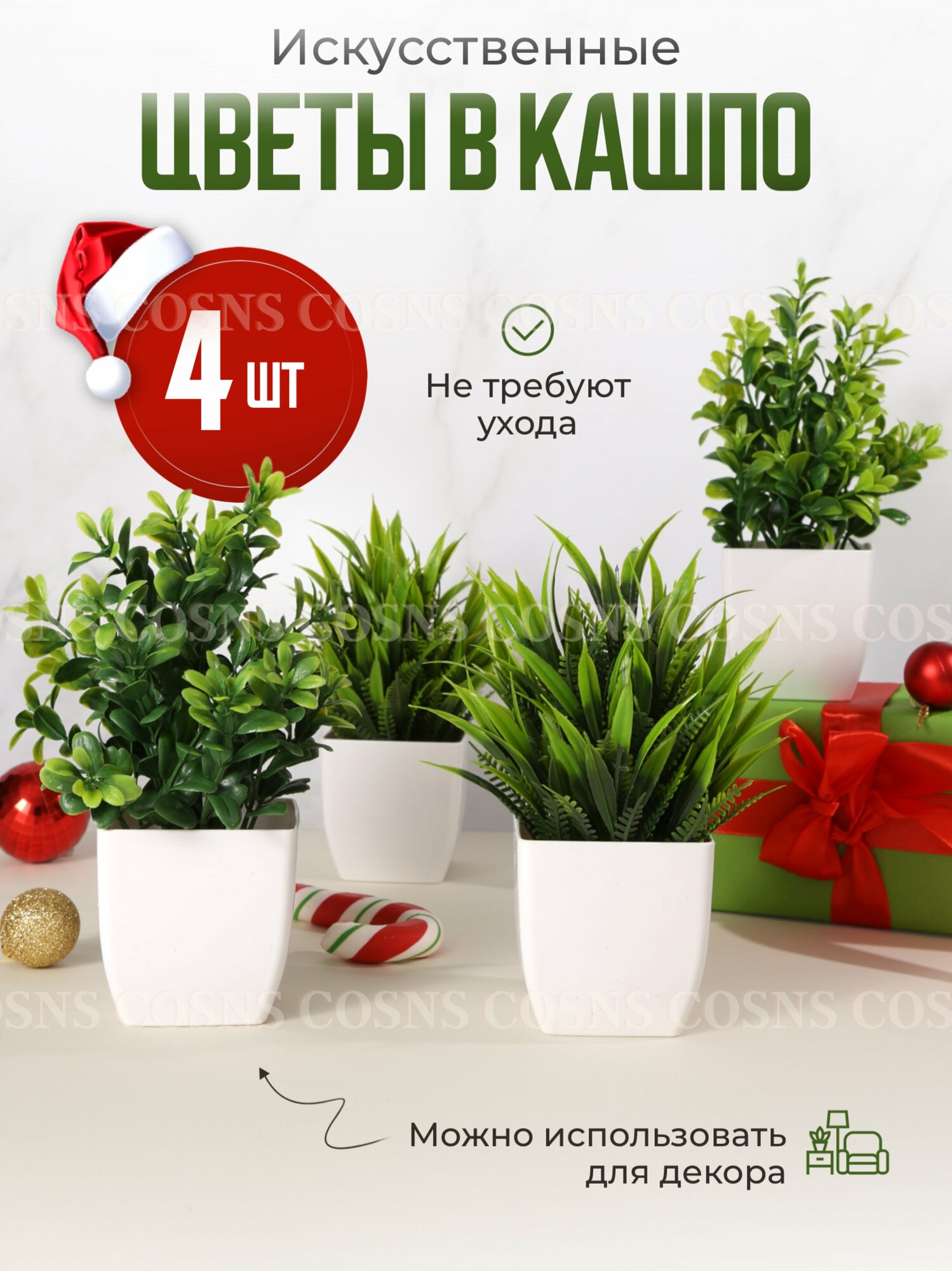 10 цен на Искусственные цветы в горшке растения декор в кашпо 4 шт