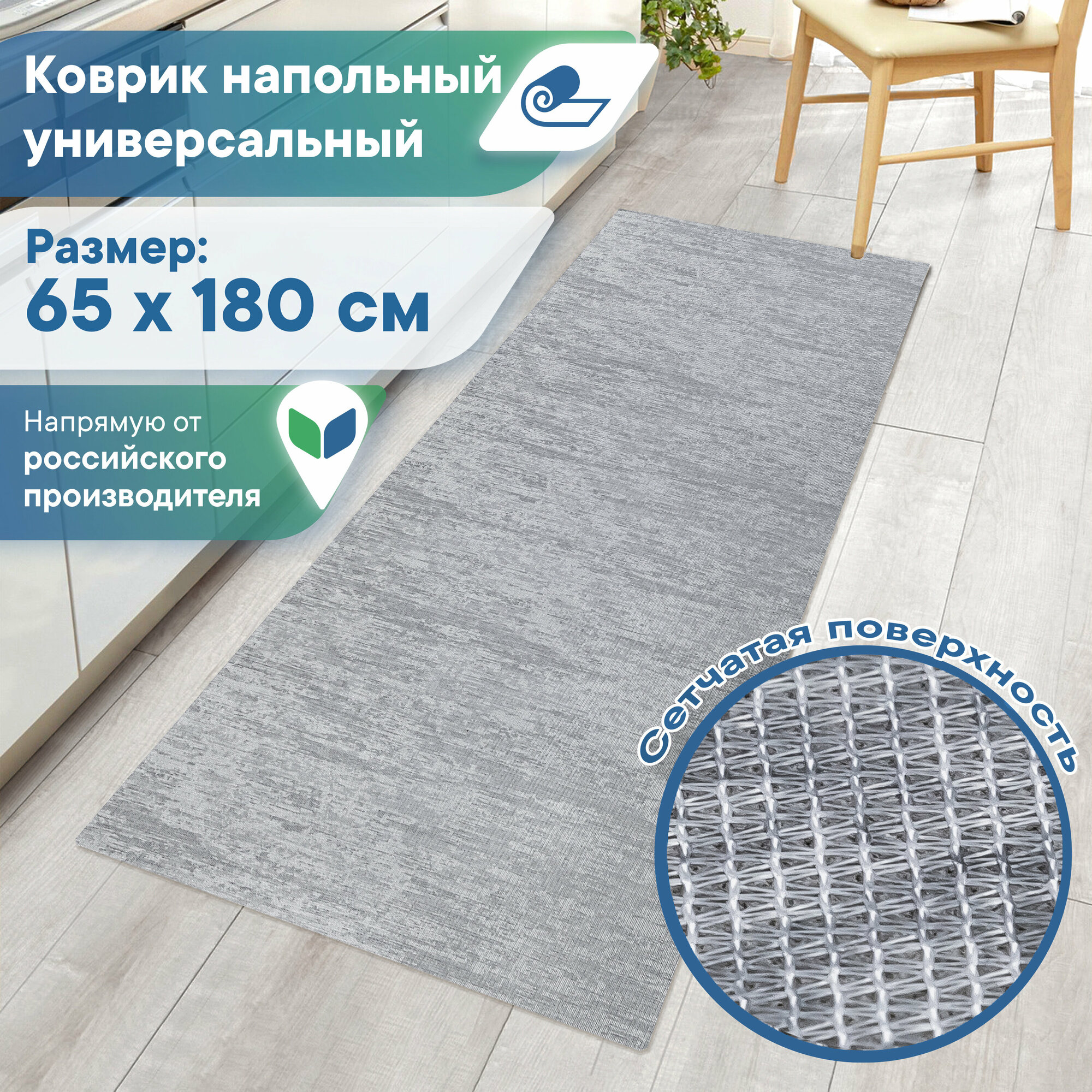 Коврик дорожка напольный VILINA противоскользящий мягкий безворсовый в прихожую в комнату в коридор на кухню 65х180 см ковровая дорожка "Элемент" серый 985 ₽