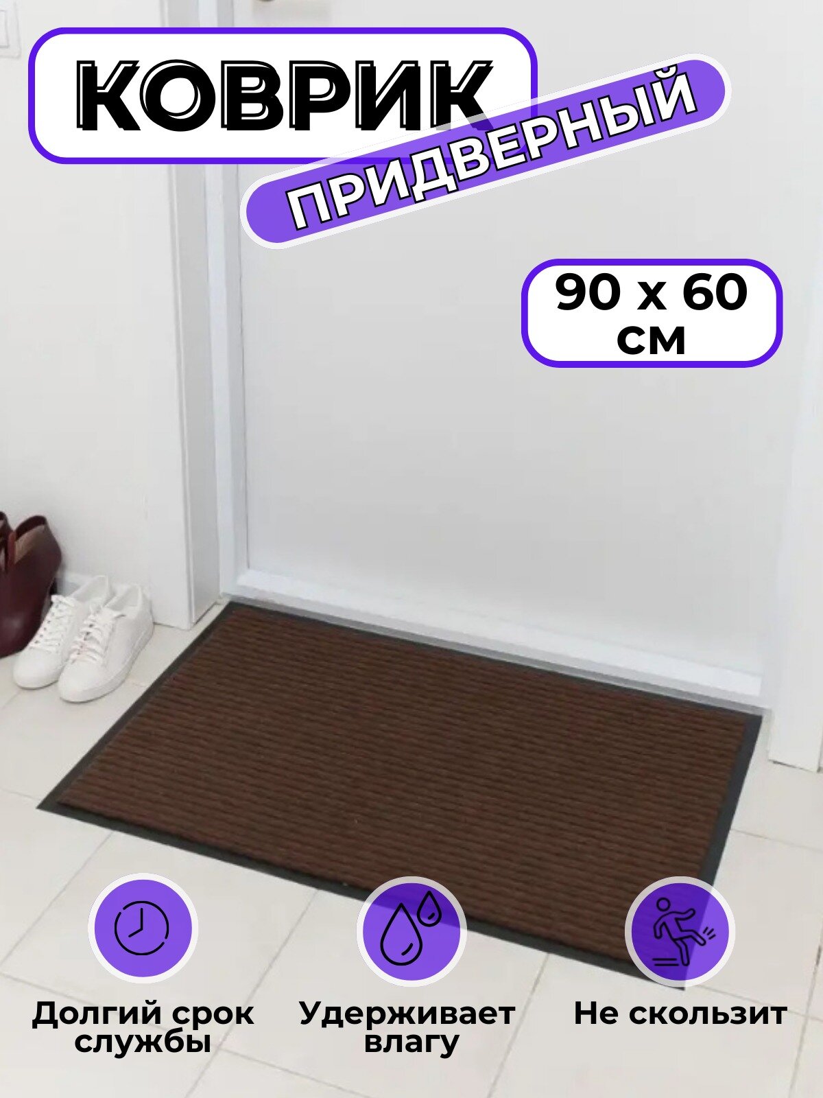 Коврик придверный в прихожую 60*90/коврик придверный грязезащитный/цвет коричневый информация: