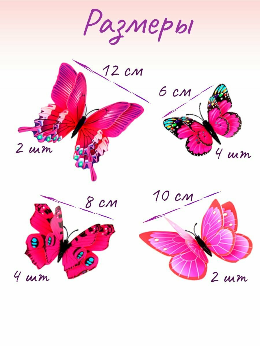 Наклейки бабочки интерьерные 3д для украшения комнат, дома и цветов цвет фуксия информация: