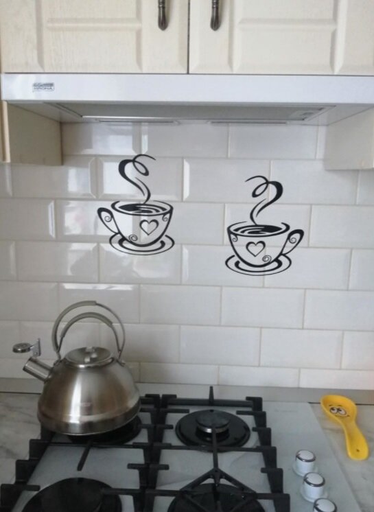 Отзывы на Декоративная наклейка на стену "Две чашки кофе" (вырезанная), размер одной 29*29 см, черная