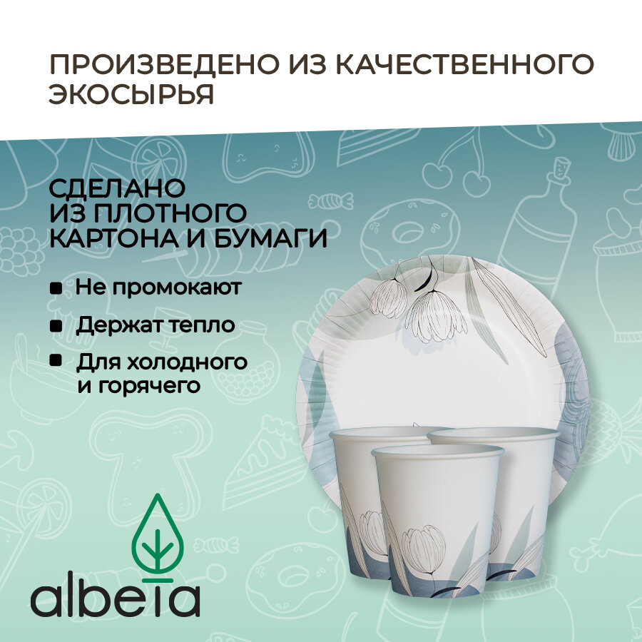 10 цен на Набор одноразовой посуды для пикника и праздника на 12 персон, принт "Тюльпан"