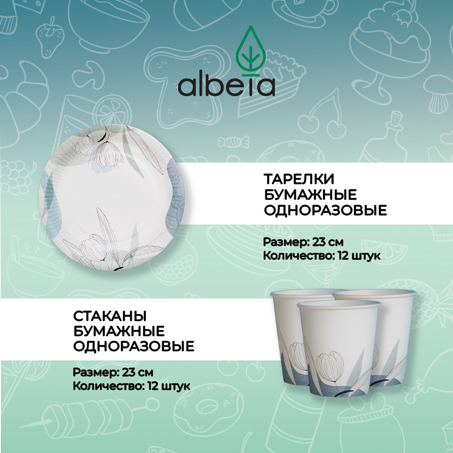 Набор одноразовой посуды для пикника и праздника на 12 персон, принт "Тюльпан" информация: