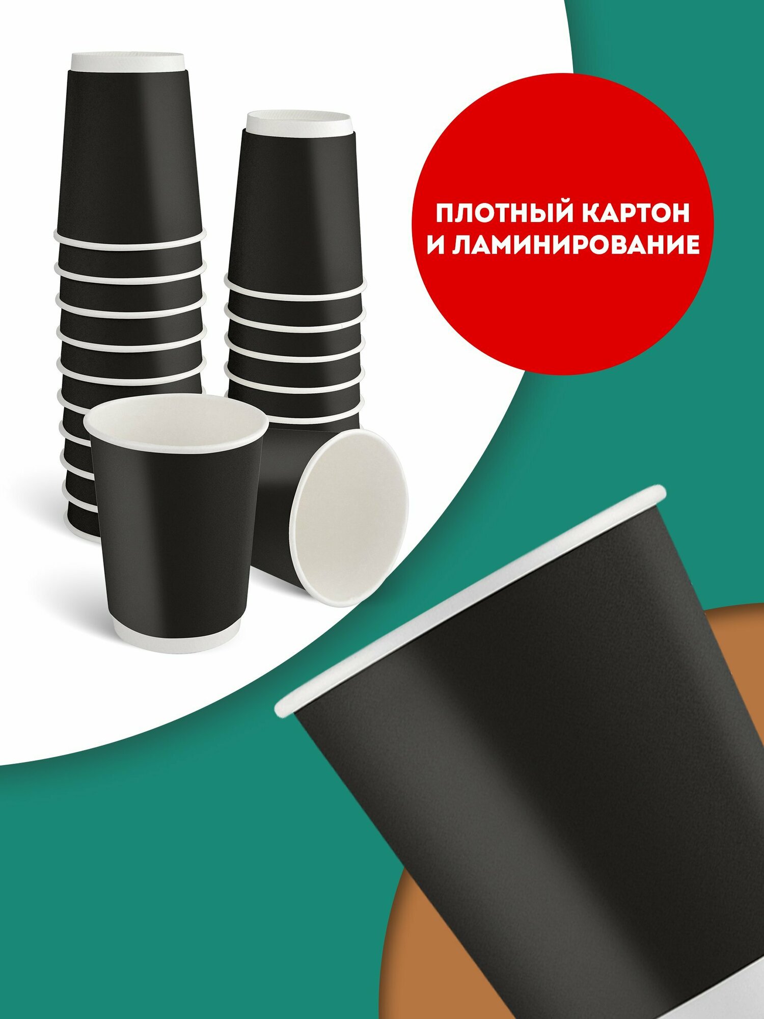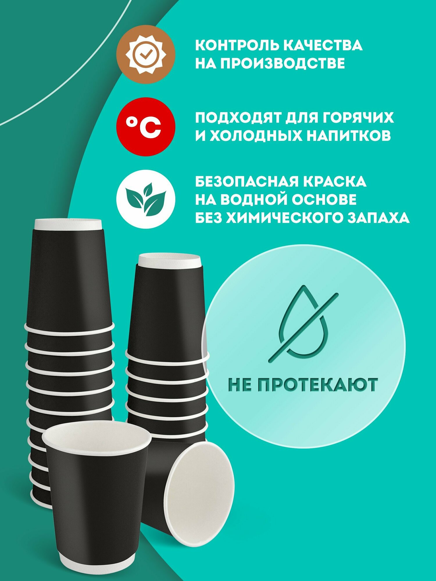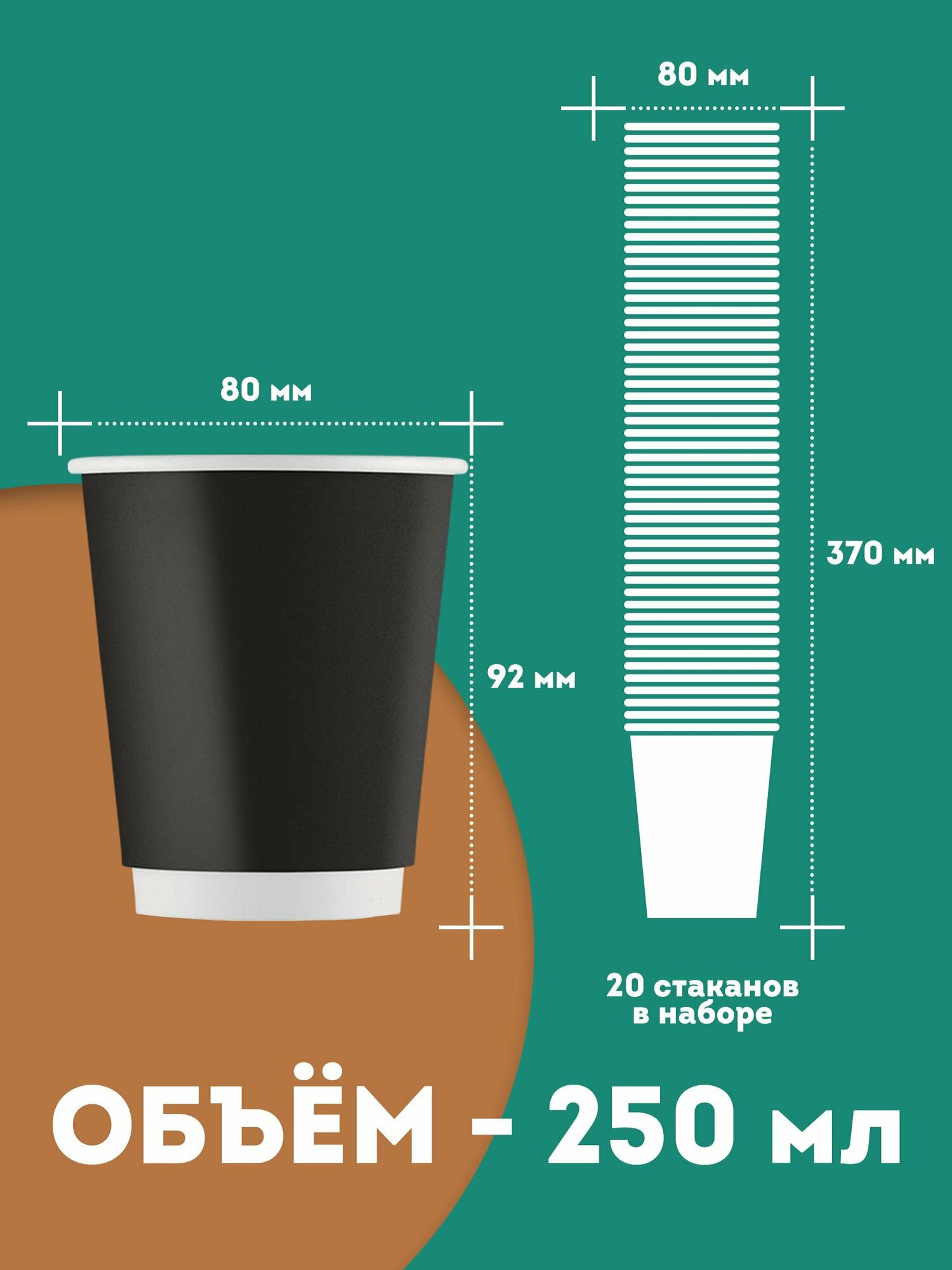 Набор одноразовых бумажных стаканов, 250 мл, 20 шт, чёрные, двухслойные; для кофе, чая, холодных и горячих напитков информация: