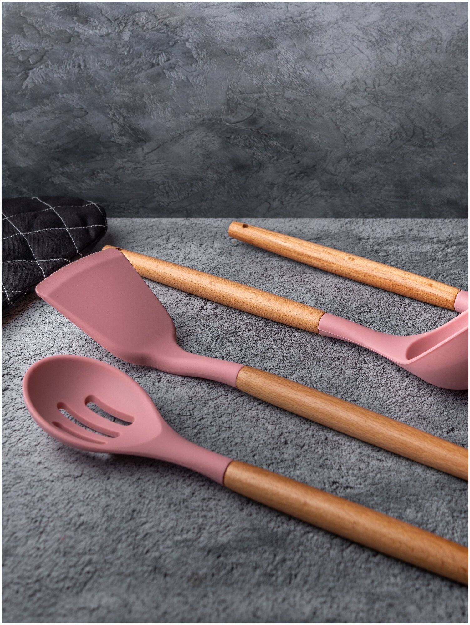 Отзывы на Набор кухонных принадлежностей из бука и силикона, 12 предметов - розовый