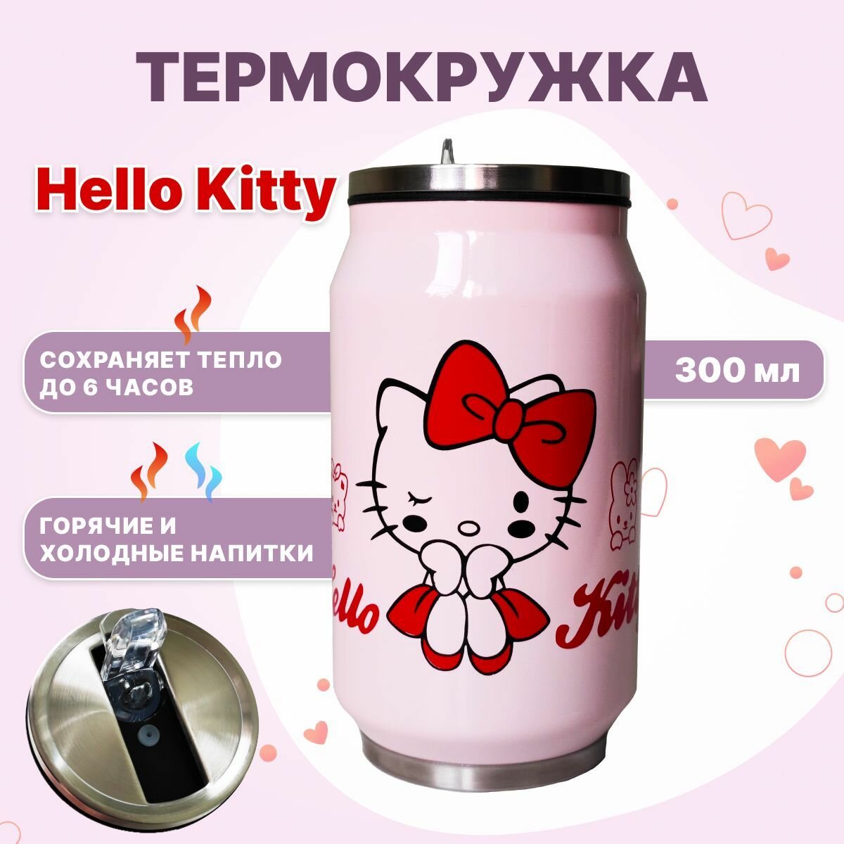 Отзывы на Термокружка с трубочкой Hello Kitty розовая, Термокружка детская, Кружка непроливайка для детей, Термокружка для кофе и чая Хеллоу Китти 280 мл.