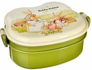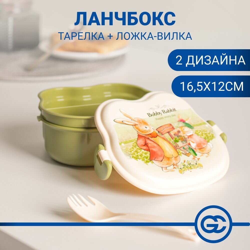 Ланчбокс квадратный VETTA (829-143) "Зайчата", тарелка, ложка-вилка, 16,5х12см, полипропилен