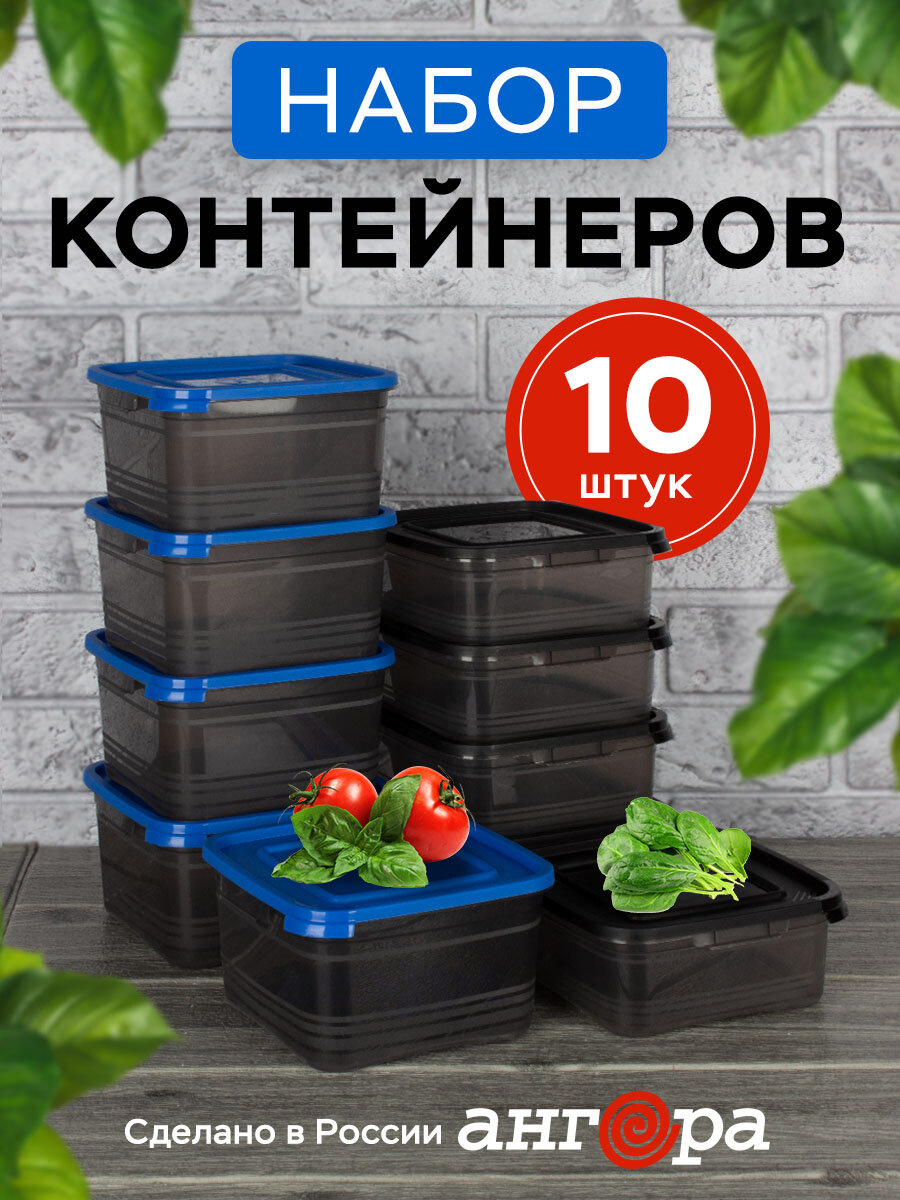 10 цен на Контейнер для еды и хранения продуктов 10 шт Ангора, набор контейнеров 0,7 + 1л, синий + черный