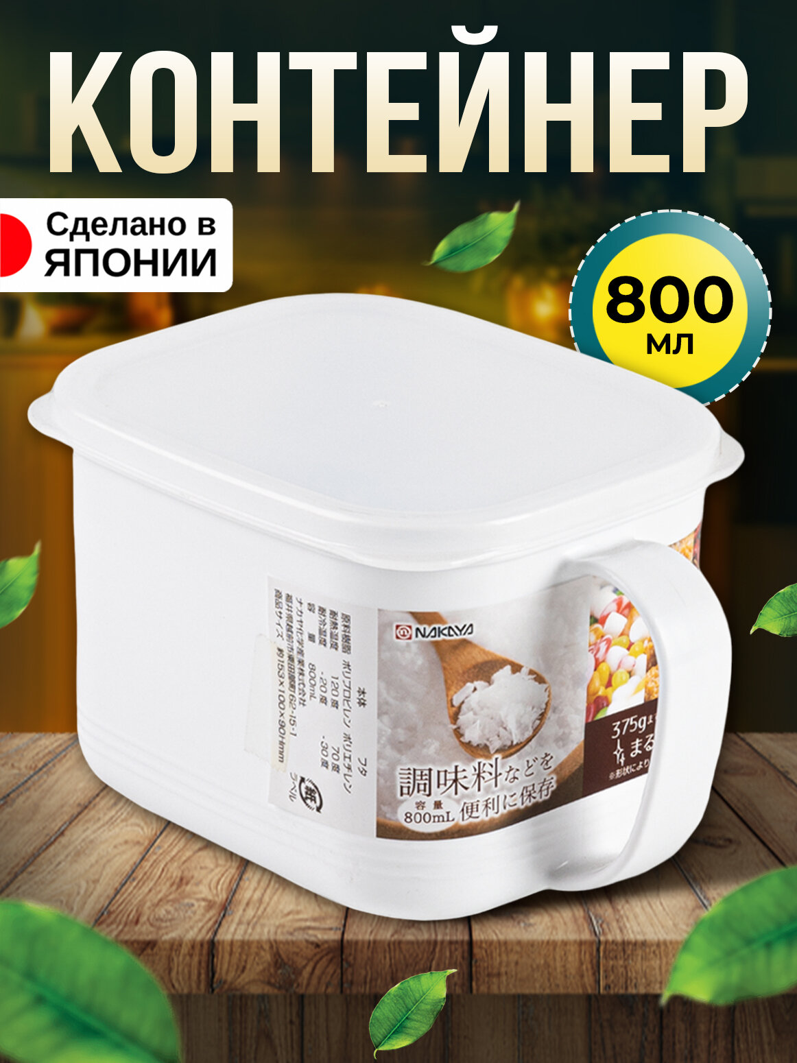 Контейнер для хранения сыпучих продуктов пластиковый с крышкой 800 мл 15,3х10х9 см информация: