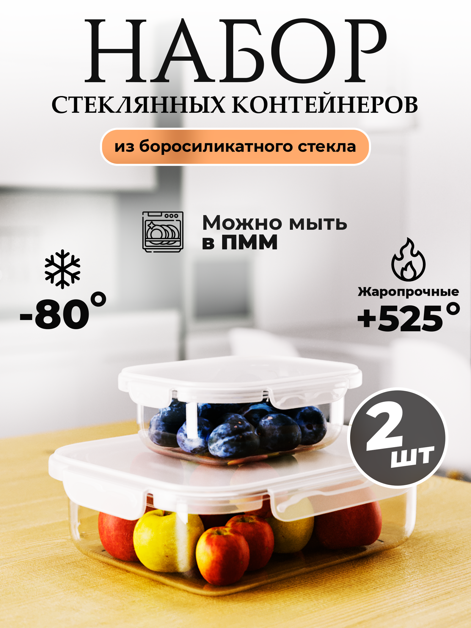 | Комплектация | Набор стеклянных контейнеров с герметичными крышками |