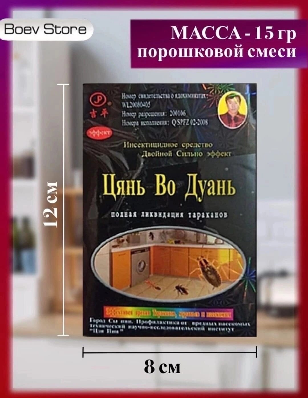 | Подробная комплектация | Цянь во Дуань средство от тараканов, муравьёв и клопов, 15 гр - 1 упаковка |