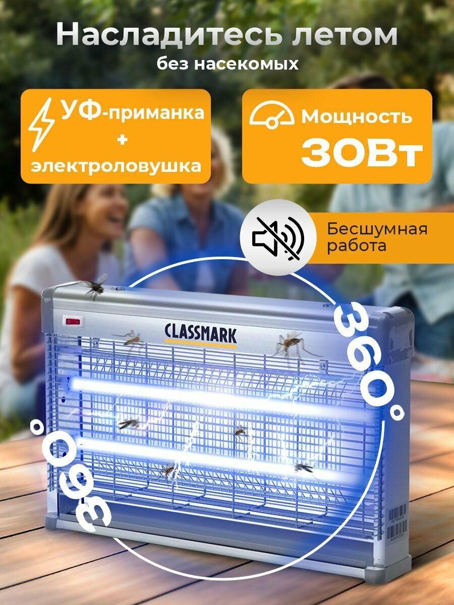 Отзывы на Лампа от комаров Classmark антимоскитная, питание от сети, ультрафиолетовая, мощность 30 Вт, черный