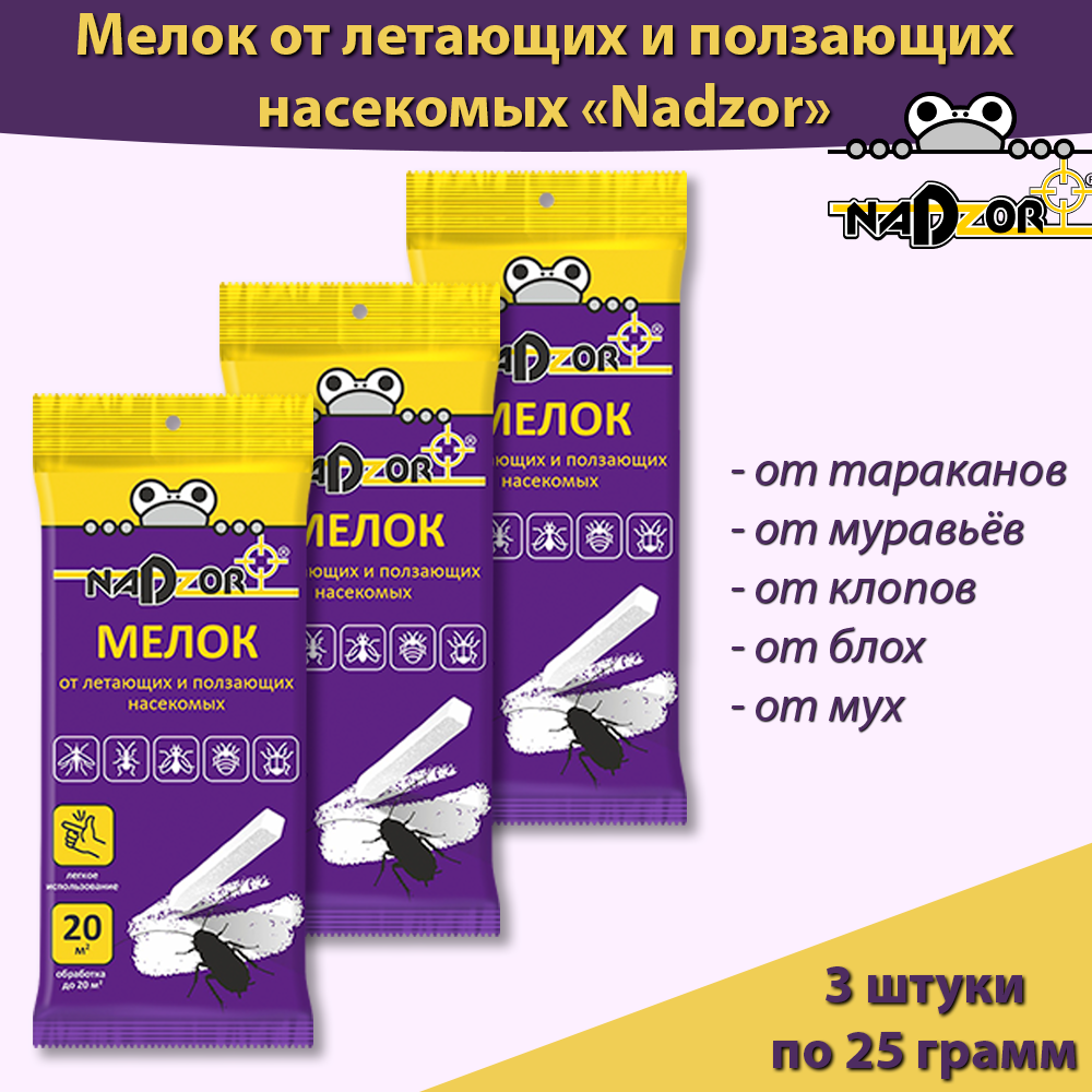 Мелок от тараканов, муравьев, клопов, блох, мух, 3 штуки информация: