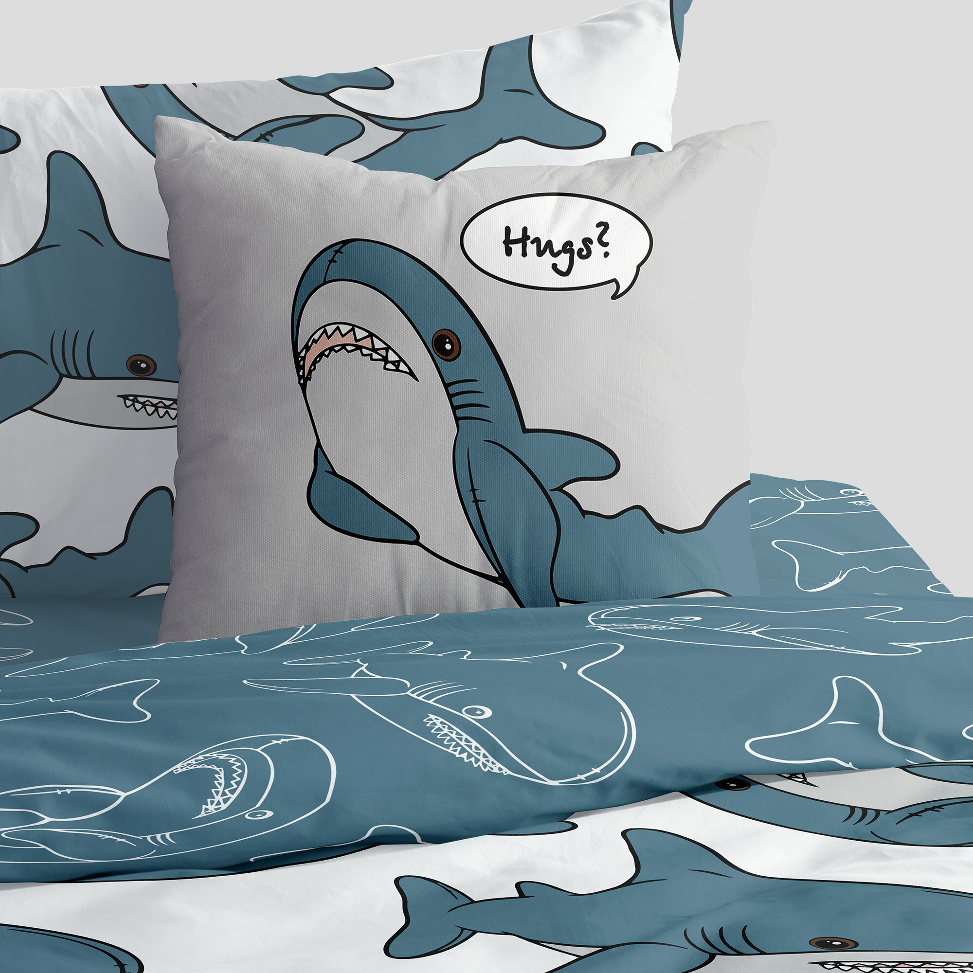 Подушка 40х40 декоративная габардин / для дома / наволочки декор / в гостинную / гипоаллергенная / мягкая "Crazy Getup" рис 16694-1 Plush shark информация: