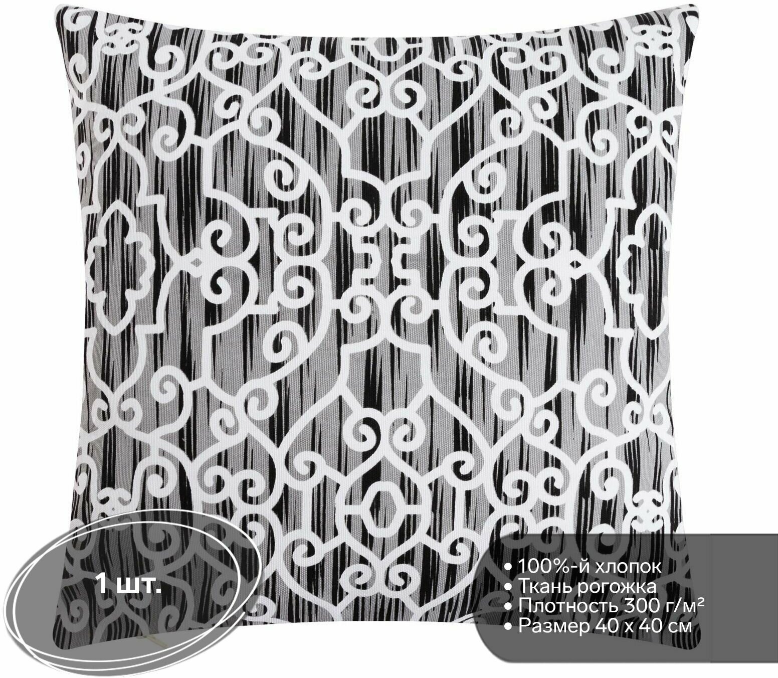 Наволочка декоративная 40х40 см, "Monograms black", 100% хлопок