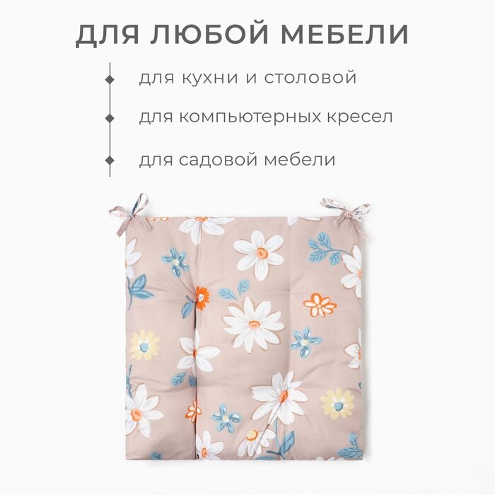 10 цен на Сидушка на стул Этель "Цветы" цв.серый, 40х40 см, 100% п/э Этель 10362962