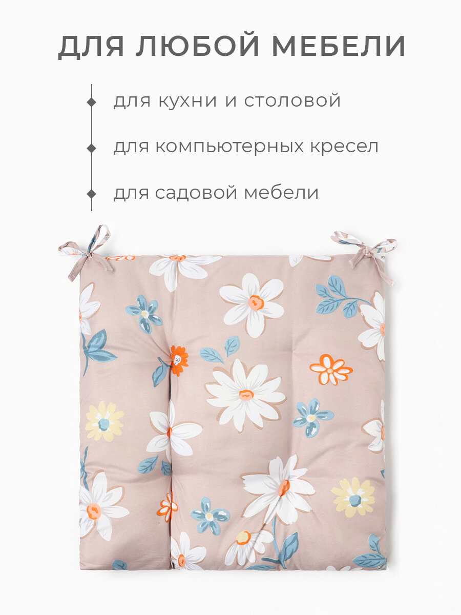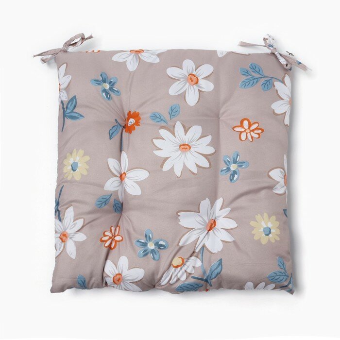 10 цен на Сидушка на стул Этель "Цветы" цв.серый, 40х40 см, 100% п/э