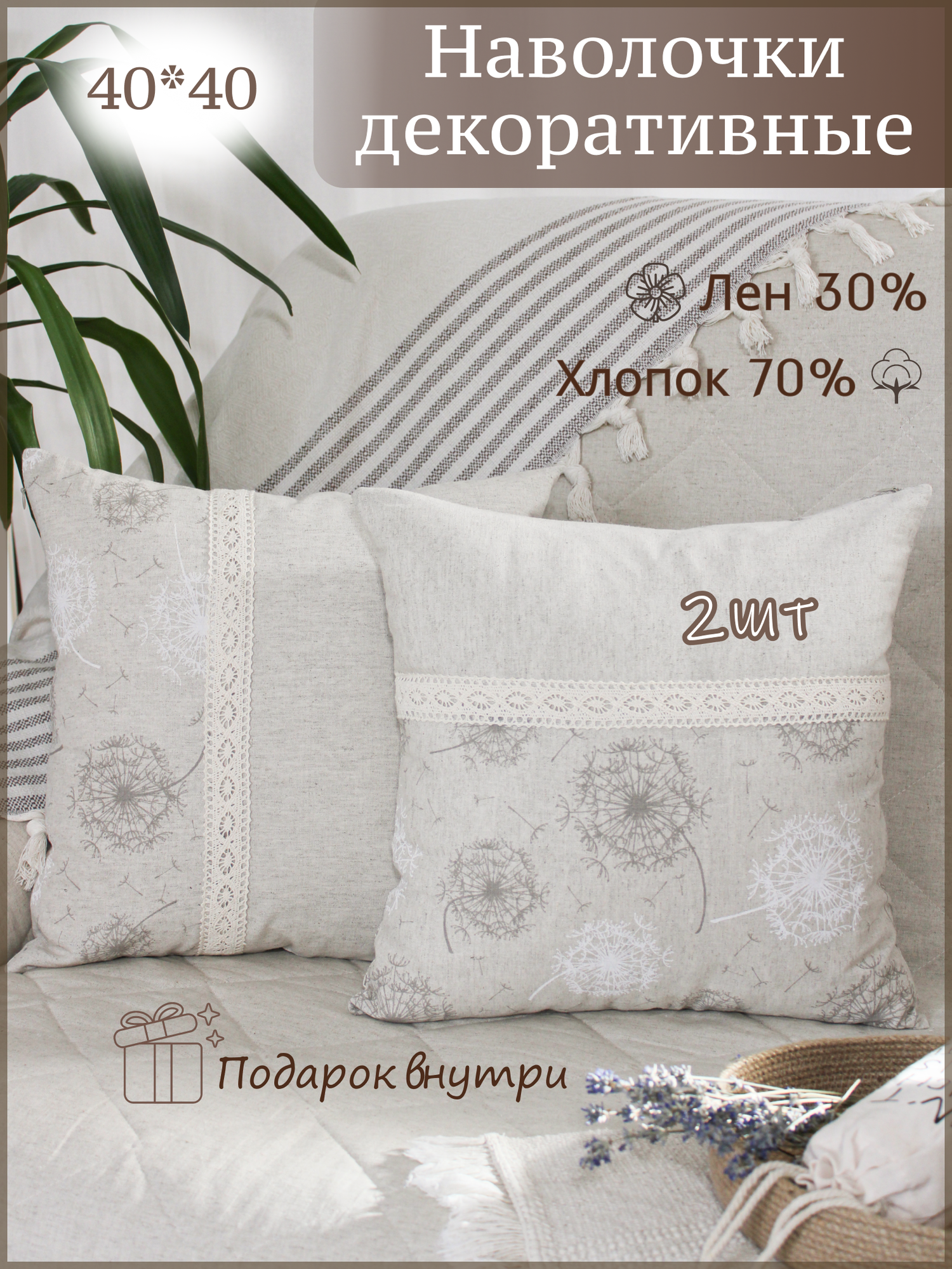 Наволочки декоративные 50х50 на подушки 40х40, на диван, хлопок лён 1 402 ₽