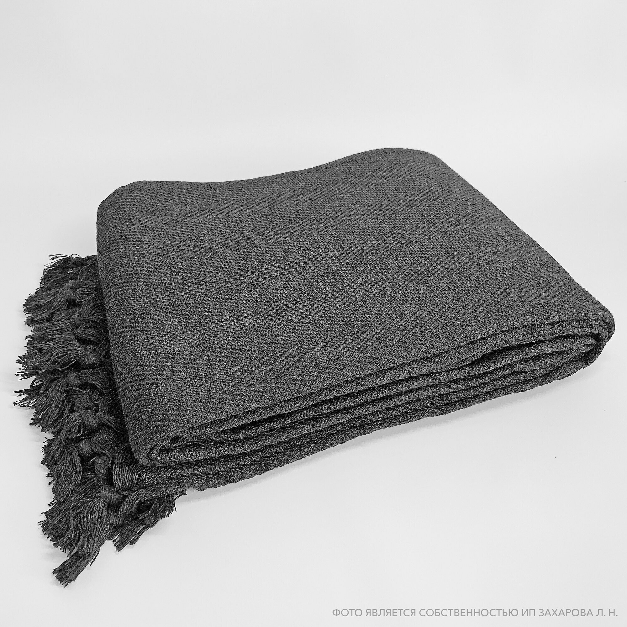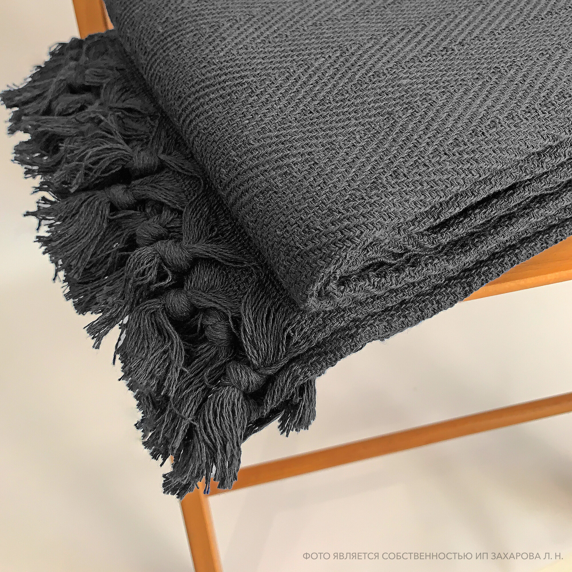Плед 200х230 см на диван и кровать 100% хлопок односторонний, антрацитовый 3 356 ₽
