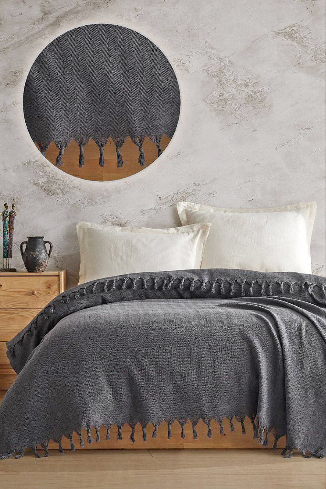 10 цен на Плед-покрывало на кровать 200х230 см 100% хлопок двухсторонний, антрацит