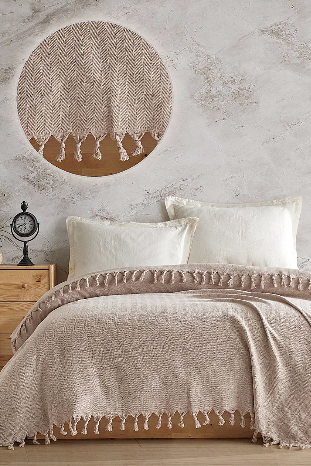 Покрывало-плед на кровать 220х240 см хлопок двухсторонний, бежевый 3 871 ₽
