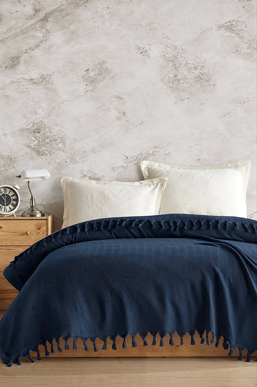 Плед-покрывало на кровать 200х230 см 100% хлопок двухсторонний, синий информация: