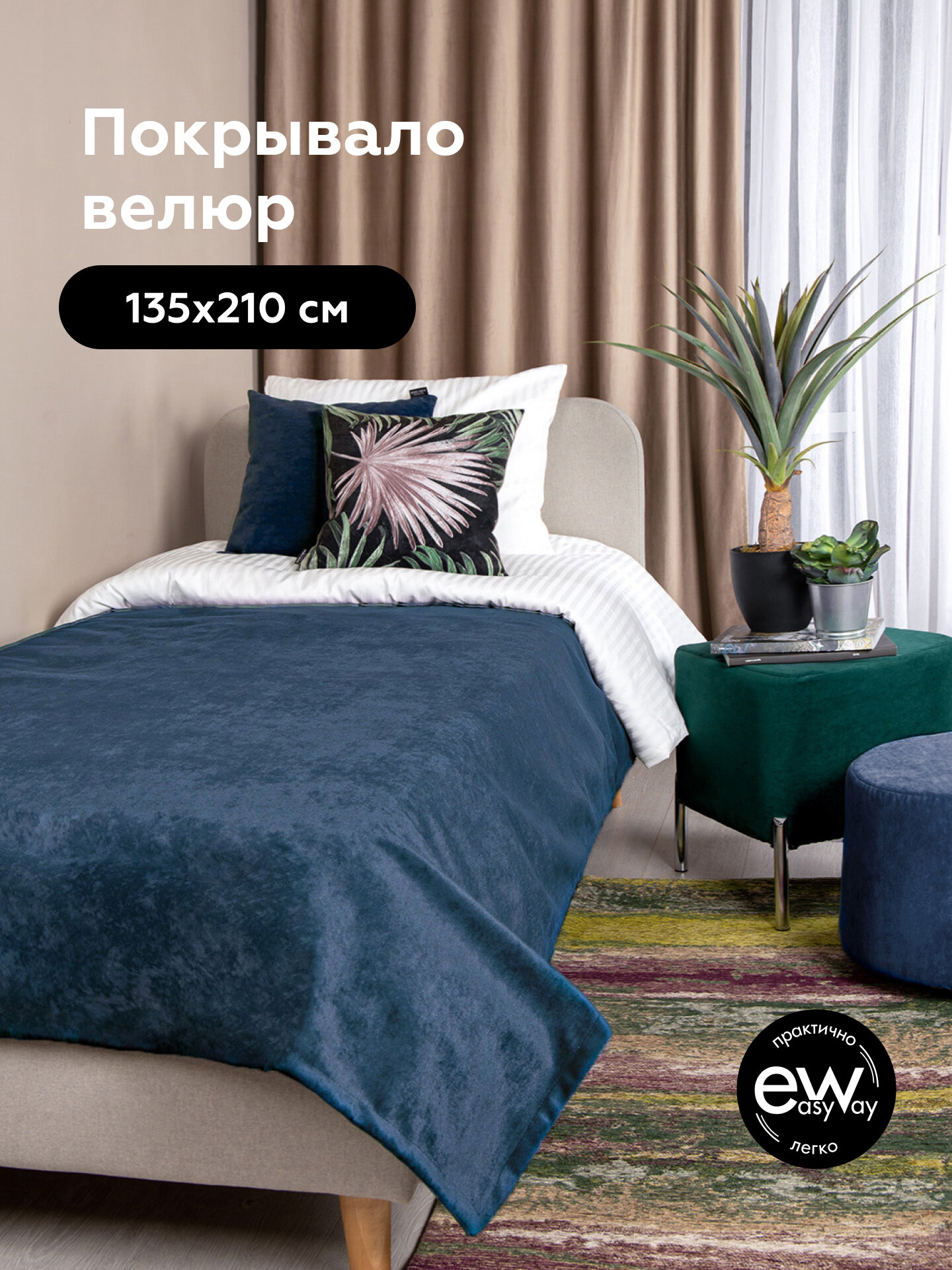 Покрывало на кровать 135x210 см UNO OPERA ATLANTIC велюр 2 360 ₽
