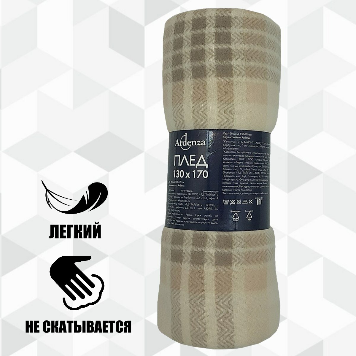 | Подробная комплектация | Плед флисовый 130х170 см, c рисунком бежево-молочная клетка - 1шт. рулоном в полипропиленовом транспортировочном пакете |