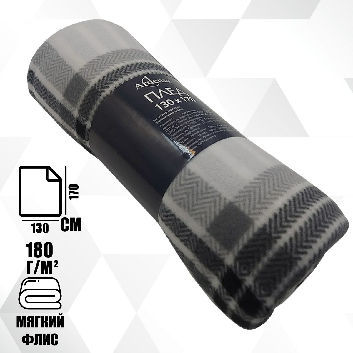 Плед 1.5-спальный 130х170, флис, черно-белый, клетка, на природу информация: