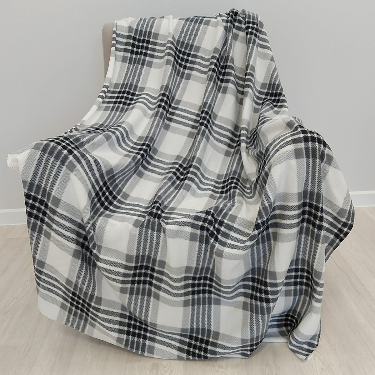 10 цен на Плед 1.5-спальный 130х170, флис, черно-белый, клетка, на природу 3шт