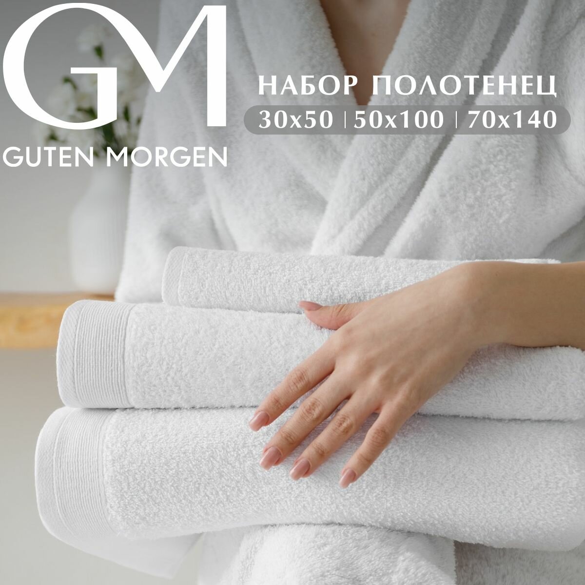 Отзывы на Набор полотенец махровых, Guten Morgen 3 шт. 30х50, 50х100, 70х140, хлопок 100%, 500 г/м2, Белый
