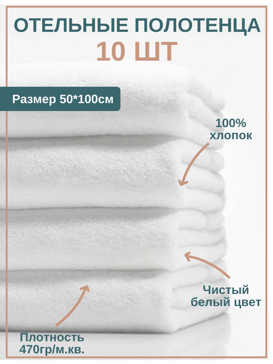 Отзывы на 10шт - Полотенце махровое отельное 50*100см (470гр/м2), белое, 100%хлопок