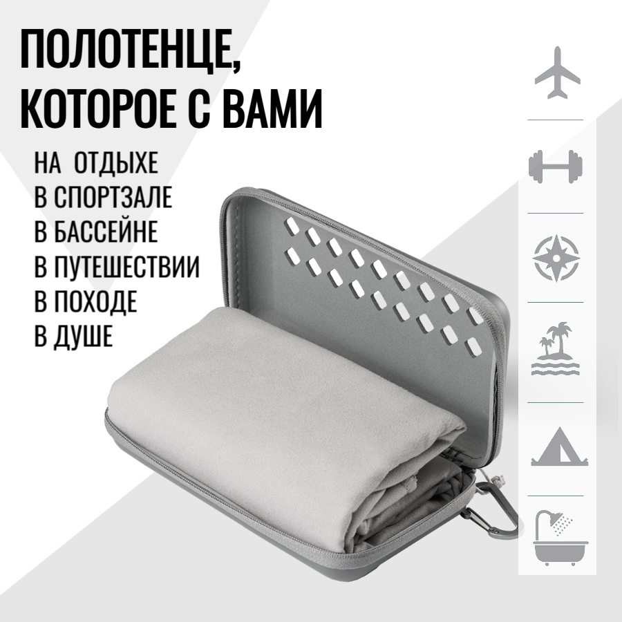 Отзывы на Полотенце из микрофибры спортивное пляжное для бассейна и спорта быстросохнущее, серое, 60х120 см