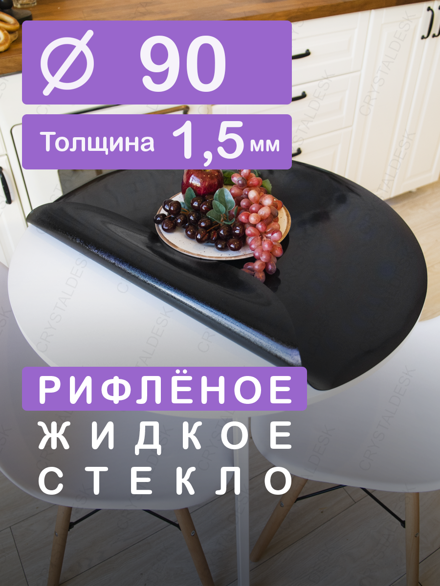 Рифленая черная тонированная скатерть на круглый стол CrystalDesk D 90 см. Жидкое гибкое стекло 1.5мм. Чёрная клеенка ПВХ. информация: