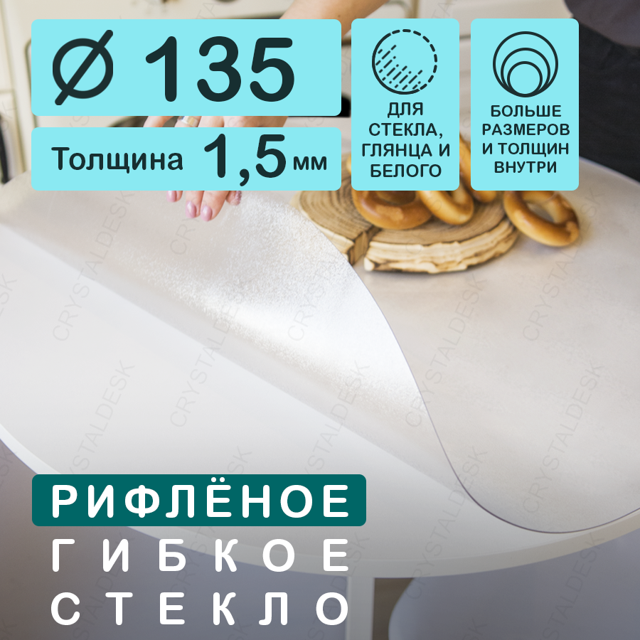 10 цен на Круглая рифленая скатерть (гибкое/мягкое стекло). Толщина 1,5 мм. CrystalDesk. ПВХ скатерть. 135х135 см. Прозрачная. На круглый стол.