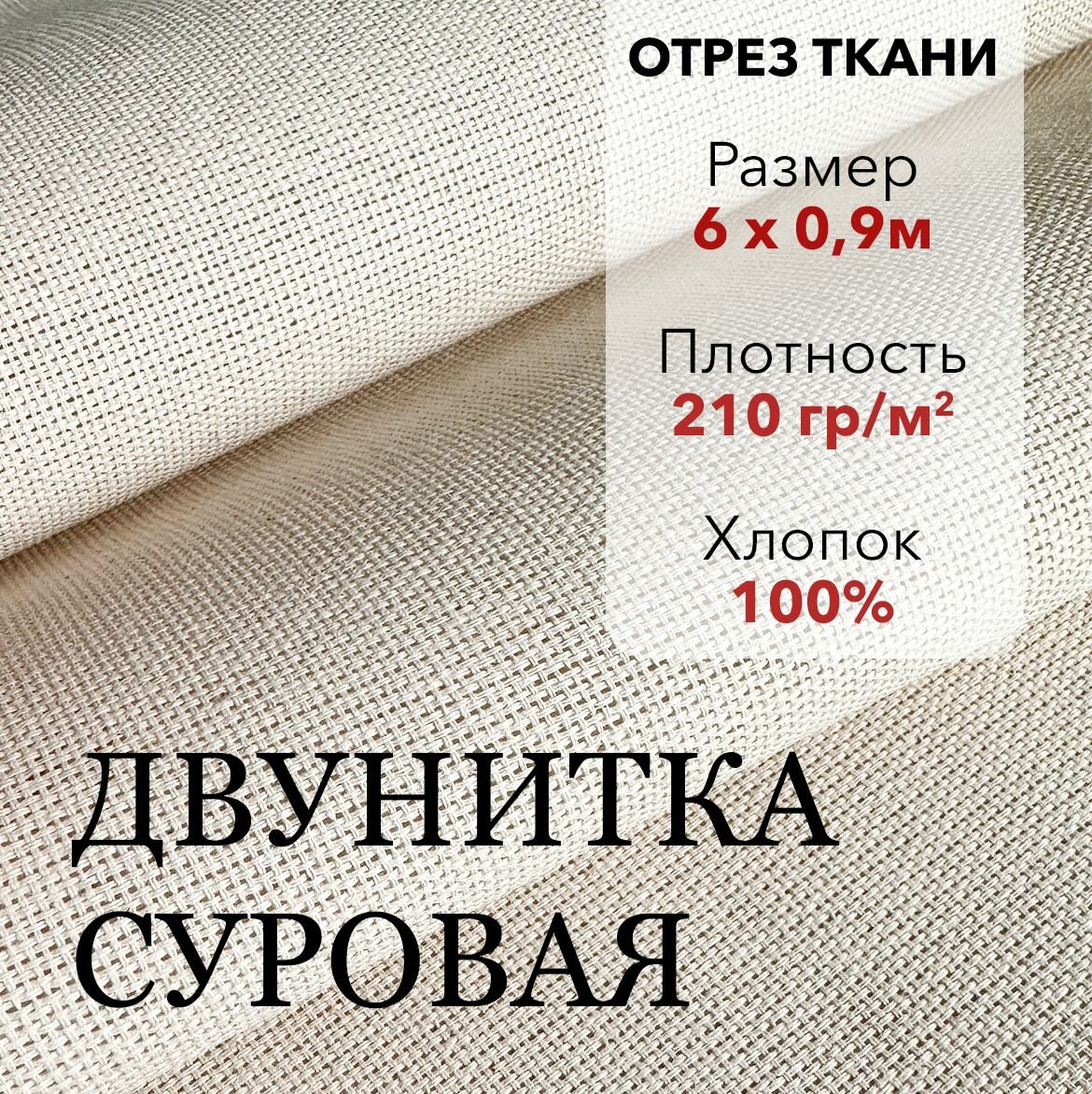 Ткань Двунитка Суровая, хлопок 100%, отрез ткани 6 м, ширина 90 см, плотность 210 г/м, Материал для шитья и рукоделия информация:
