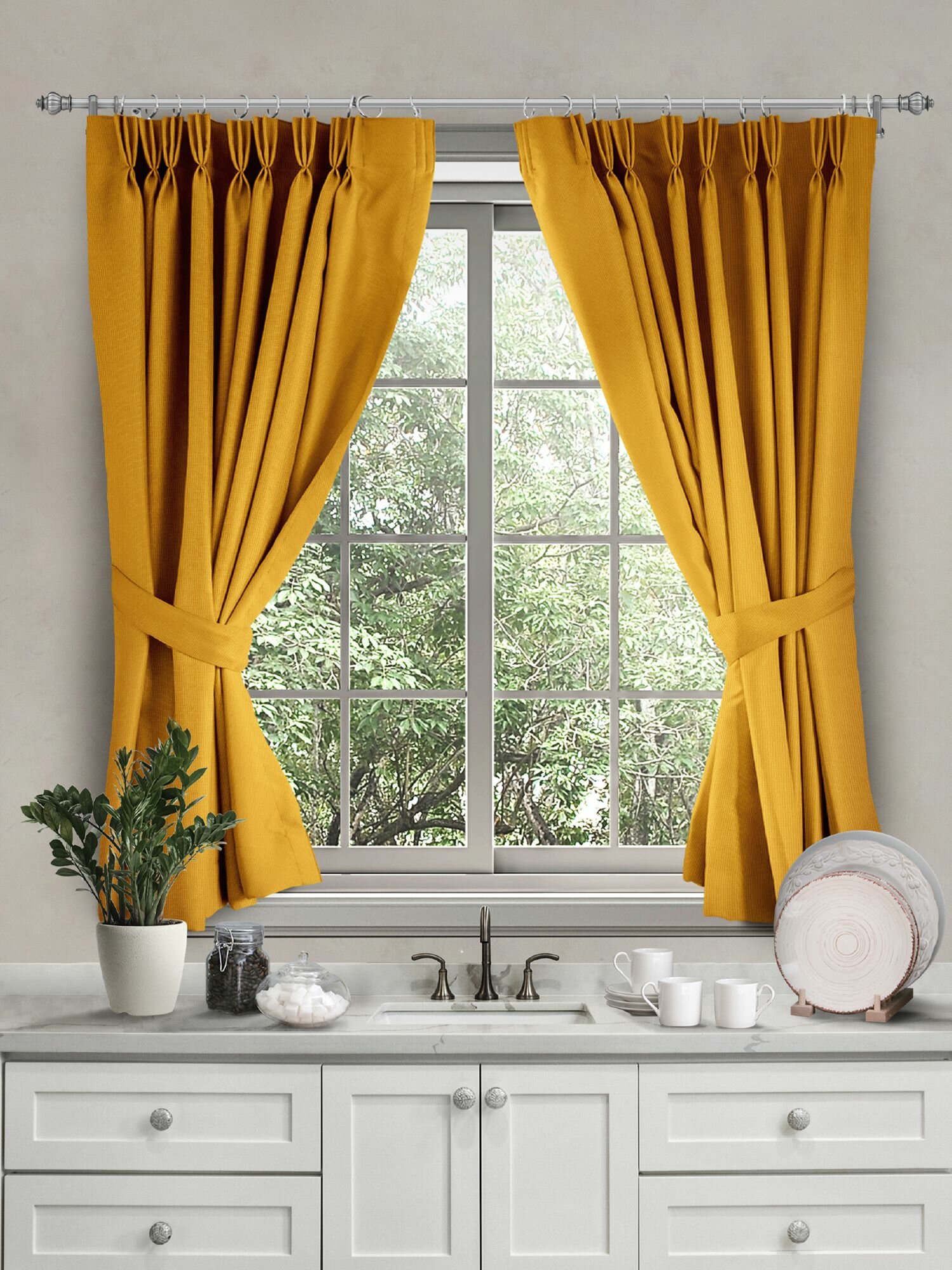 Отзывы на Комплект штор с подхватом рогожка 145х180 (2 шт.) "Унисон" рис 30004-16 Basic желтый