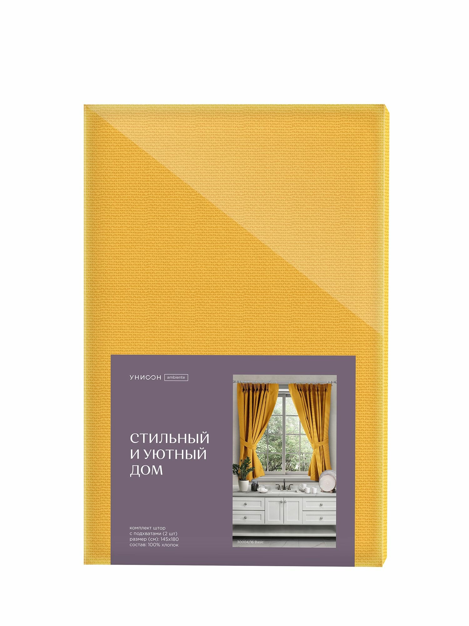 Комплект штор с подхватом рогожка 145х180 (2 шт.) "Унисон" рис 30004-16 Basic желтый информация: