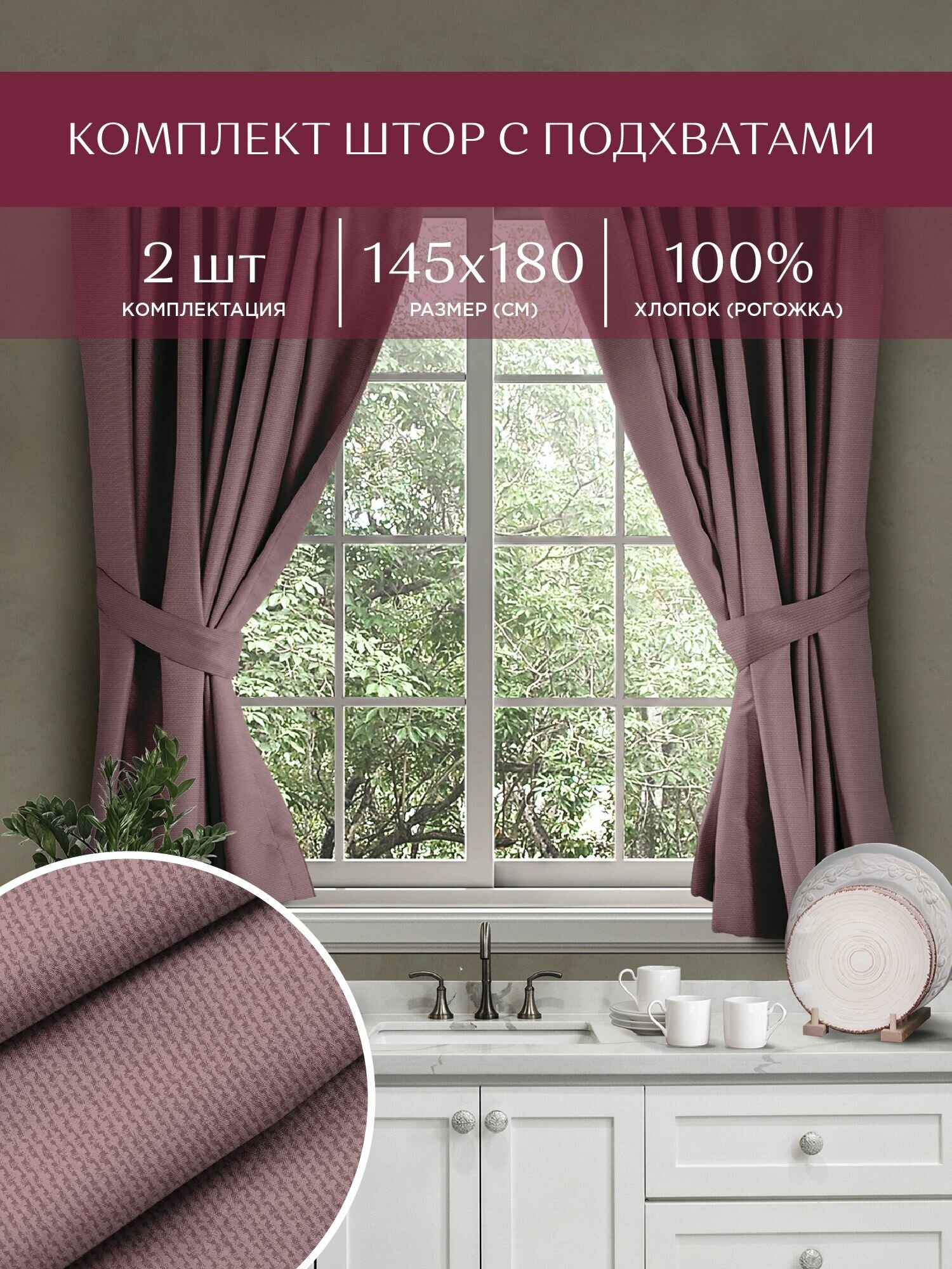 10 цен на Комплект штор с подхватом рогожка 145х180 (2 шт.) "Унисон" рис 30004-17 Basic сиреневый