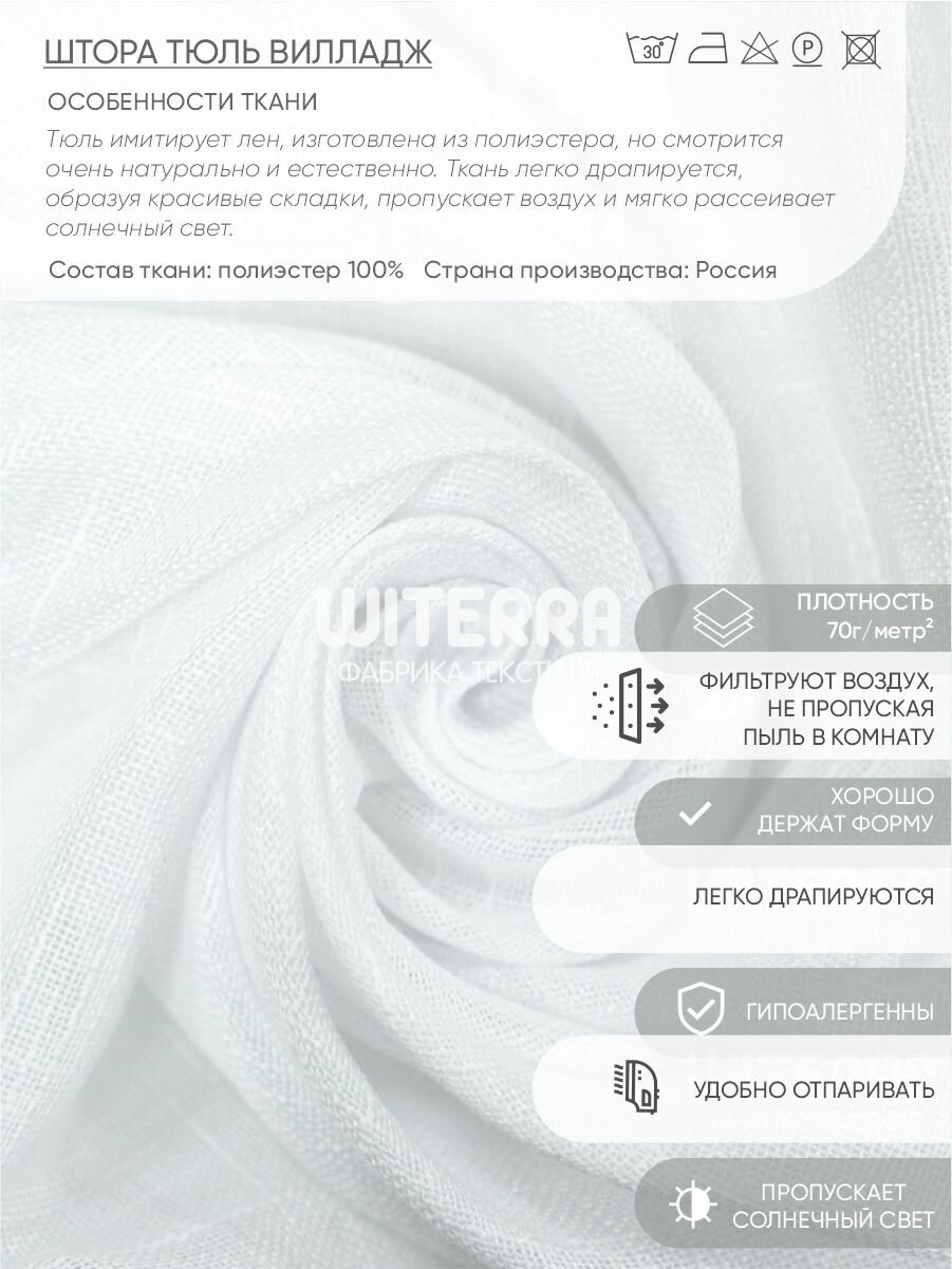 Штора тюль Witerra Вилладж под лен, на шторной ленте, для потолочного и круглого карнизов, 275х300 см, 1 шт. информация: