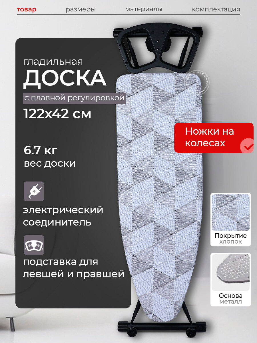 Гладильная доска Nika широкая с розеткой и колесиками информация: