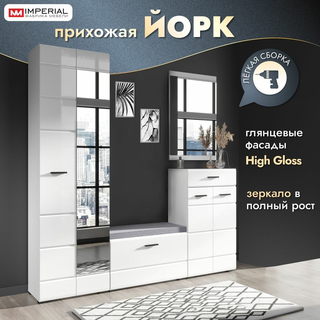 Прихожая Йорк 202.5х35.5х205 с угловым шкафом, тумбой, комодом и зеркалом комплект прихожей белый глянец 37 999 ₽