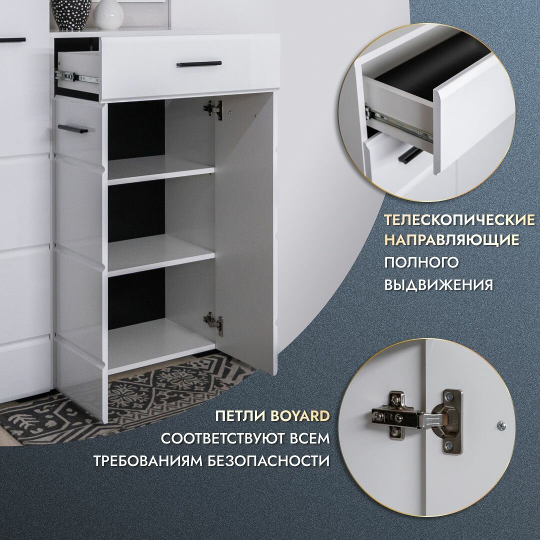 Отзывы на Прихожая Йорк 200х35х205 со шкафом, тумбой, комодом и зеркалом модульная прихожая белый глянец
